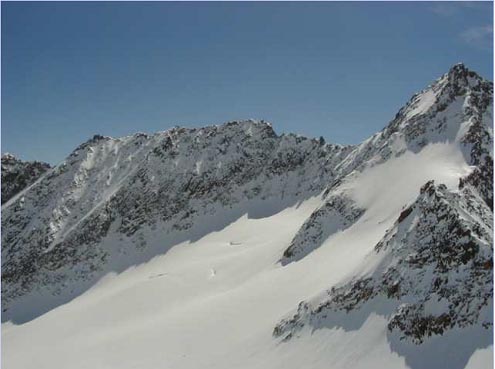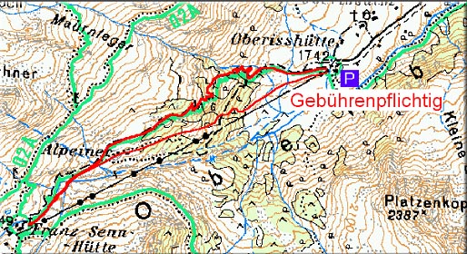 ab 3.050 gegenüber der Ruderhofspitze ist Feierabend für heute, denn man muß ja auch an den Rückweg denken. Die letzten Müsliriegel geteilt und ne Stunde in der Sonne gesessen. Egal 3.000er Marke erreicht, die Ruderhofspitze rennt nicht weg.