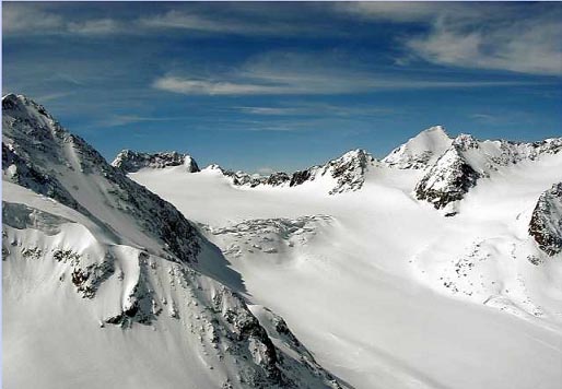 Jetzt aber los. Es ist saukalt, aber schön sonnig. Der Weg am Alpeiner Bach zieht sich endlos hin bis wir auf den Alpeiner Ferner treffen. Unterwegs treffen wir eine niederländische Stubai Expedition, die irgendwo biwakiert hatte. Wow, ganz schön taff....