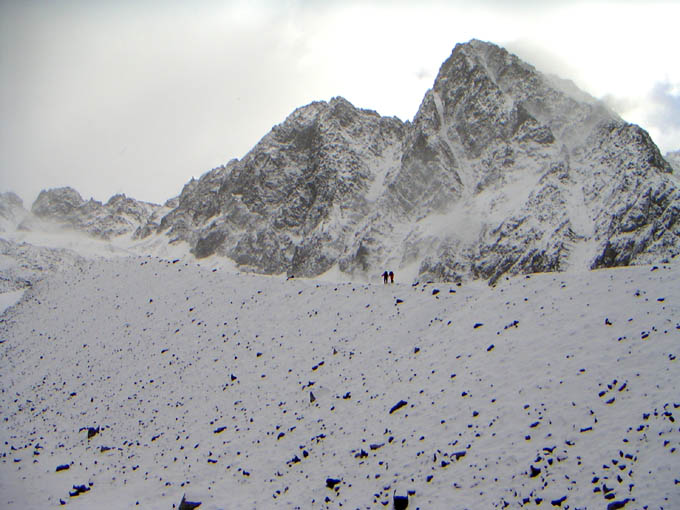 In der Ferne auf der Moräne leuchteten uns 2 orange Punkte