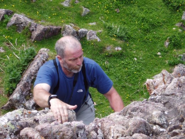 Berni, vom Ehrgeiz zerfressen, wendet die Münchhausen-Technik nicht erst oben am Wächtenrand an, sondern hievt sich mit dieser Methode von unten nach oben - und kommt letztlich dementsprechend erschöpft über die Kante gekrochen.