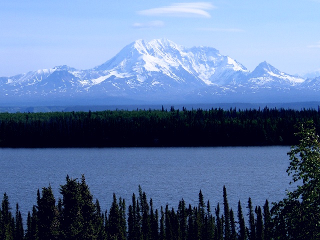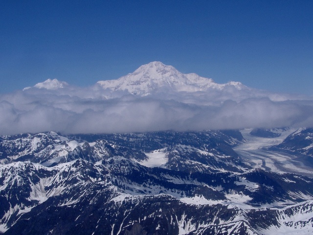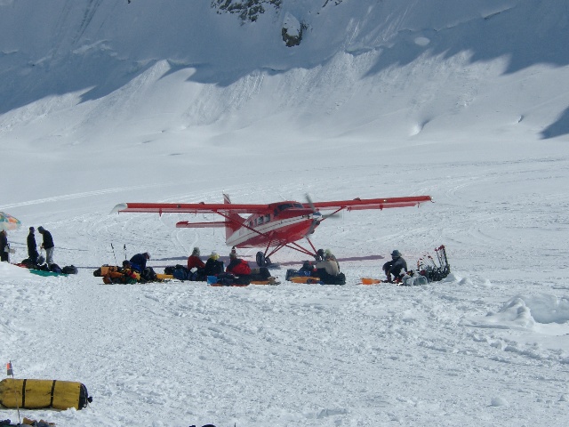 Weiter geht’s und laut Reiseleitung gab’s den ersten Blick zum Makki. Ich sah zwar nur Wald und Berge, aber er soll ja auch noch 100 Meilen weg sein. Und schon wieder rein ins Flugzeug (aber ein kleineres), aber vorher noch das öffentliche Wiegen von Gepäck und Mensch, was dann wieder eher peinlich war, weil die Waage bei 260lbs (Amerikanische Pfund) ihrer Endpunkt hatte (...mit Kleidung, Schuhen und Fotoapperat). Auf alle Fälle war ich im Ranking deutlicher Sieger, ein echter Makki-Fan halt.
