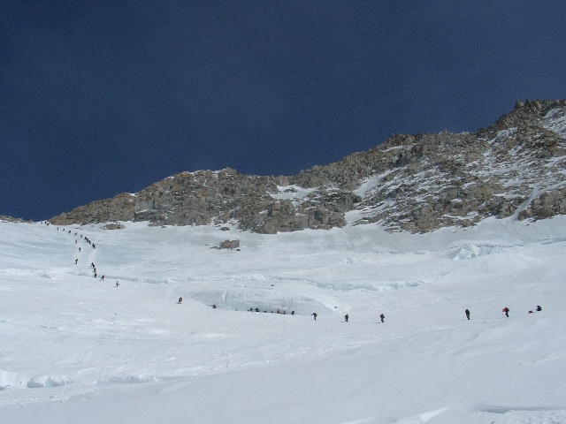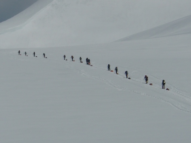 Und dann war es endlich soweit, wir gingen zum Makki! Mich fröstelte vor lauter Aufregung, wegen der Spannung bekam ich kaum Luft zum Atmen. Nach einer gemütlichen Wanderung kamen in unserem Vierer-Makki-Team bei den anderen plötzlich Zweifel an unserem Vorhaben auf. Besonders am Football-Field (weiß doch jeder, dass neben einem guten US-Football-Feld auch ein Makki steht) strebten einige nach rechts, „ist doch auch fast wie der Makki“, war das Argument. Ich betonte, dass dieses Kahiltna-Horn (vergleiche Bielefeldt-Weichei...climby, nicht so überheblich) nicht konform zu meinen heterosexuellen Neigungen läuft und konnte alle davon überzeugen, nur am echten Makki ist ein Makki. Doch was war das?