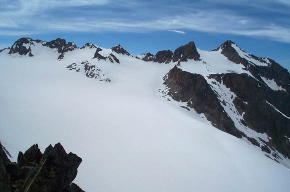 Vom Gipfel beherrscht vor allem der 300m tiefer liegende Lüsenser Ferner