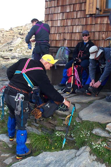 mit Seilen am Venedigergipfel 3667m
