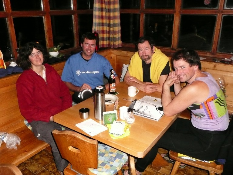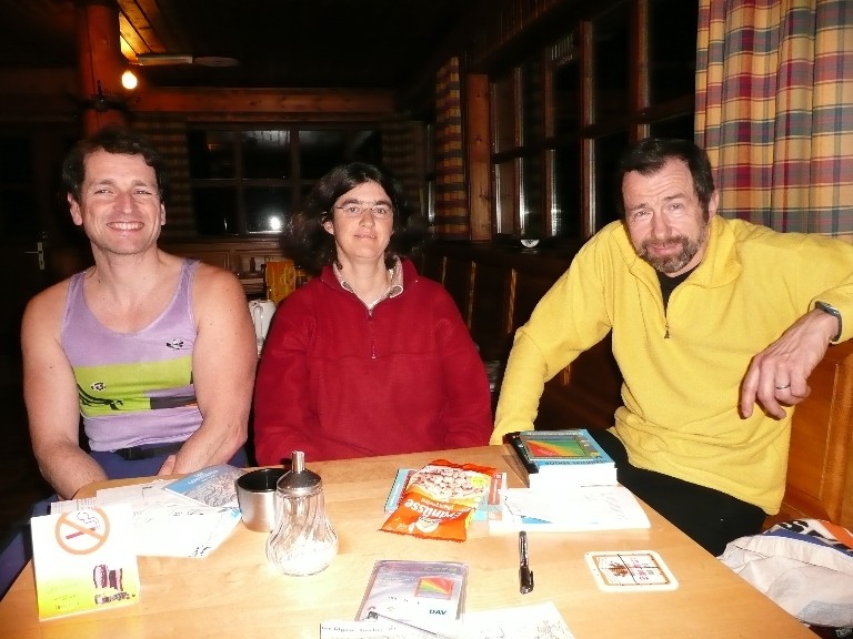Nach dem leckeren Essen gibt es noch ausgiebige Manöverkritik bis hin zur Erwähnung der ersten Hilfe. (z.B. Verschüttete nicht reanimieren) Anschließend planen wir die Tour für morgen.Wir wollen so tun, als würde Warnstufe 3 herrschen damit es ja nicht zu langweilig wird. Wir erfahren alles über Auslaufbereiche und warum die Tour im FÜHRER nur bis Warnstufe 2 erlaubt ist, wir aber dennoch diesen Teil bei Warnstufe 3 gehen können....
