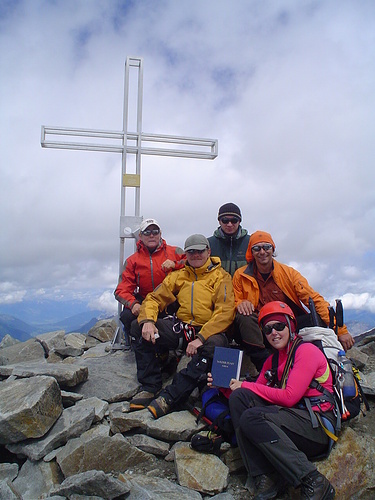 Hier also die Gruppe, die nach 9 Kurstagen in der Lage sein soll besonnen und gut vorbereitet über Gletschergelände zu gehen: Wolfgang (wk) und Barbara, Jana (scrat) und Annette, Karin (greka) und Mike (Mike).