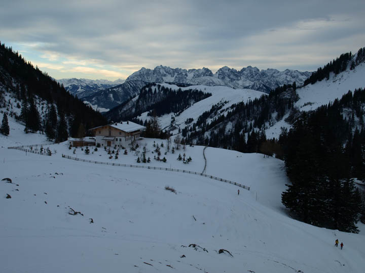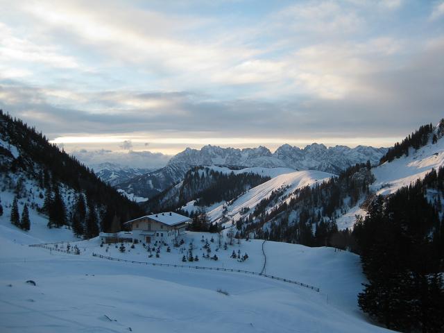 Wann hast Du denn vor anzukommen wenn Du um 17 Uhr raufgehst ??? Ich hab gestern 1,5 Stunden gebraucht (ab Berg) und ich bin nicht gerannt sondern ganz normal gegangen. Ich hab gestern mit der Hüttenwirtin geredet. Wir bekommen am Samstag den großen Raum in der Mitte und dürfen uns dort ausbreiten, andere Gäste werden in die Nebenstube abgeschoben. Ausschank ist offiziell bis 1 Uhr, aber ich hab schon eine Verlängerung ausgehandelt, wenn noch andere Gäste auf der Hütte sind ist aber definitiv um halb 3 Schluß, klar hasei ? Das bedeutet vor allem auch, dass wir gebeten sind, nicht wie die Geisteskranken auf den Fluren rumzutoben, eigentlich selbstverständlich, ODER ? Es gibt Samstag drei verschiedene Essen : Für den Genießer Hirsch mit Blaukraut und Semmelknödel, für den Studentengeldbeutel Schweinsbraten mit Knödel und Sauerkraut und für die Kaninchen Kasspatzen mit Salat. Ich hoffe das ist OK ? Mit dieser Regelung ist sichergestellt dass wir ungefähr gleichzeitig essen können. Ich hab diese Essen nach dem Schlüssel 20/20/3 vorbestellt, ein wenig Luft nach oben ist beim Hirsch aber vorhanden, aus dem Schweinsbraten bekommt sie nicht viel mehr raus. Die Schneeverhältnisse sind lausig, Skitouren aktuell nur für Wahnsinnige interessant (ihr wißt wen ich meine ?) aber Schlitten könnte gehen wenns nicht taut oder sogar noch etwas dazukommt. Die Wetterprognosen sehen eher leichten Neuschneezuwachs voraus, das könnte also passen. Noch zwei Impressionen von gestern 16 Uhr : |