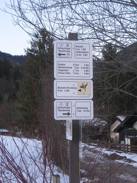von dort über das wunderschöne Plateau der Rossalm zum Weitlahner. Skifahrer würden sich hier zu Tode langweilen. Viel zu flach. Da kann man schon fast mit Langläufern drüber. Aber die Sicht auf die K-Wand & ins Flachland entschädigt für vieles. Und außerdem die Tatsache, dass da vorher noch niemand war - zumindest nach dem letzten Schneefall. Außer irgendwelchem Gamsbraten (wo bleibt der Gourmet-Smiley???) in spe natürlich. Wie man sieht, ist es reichlich windig. Jetzt noch kurz die Aussicht genießen. Diese verflixten Handschuhe, mit ihnen kann man die Kamera nicht bedienen und ohne sie erfrieren die Finger. Auf Abwegen baue ich noch eine Badewanne, weil der Boden unter meinen Füßen plötzlich 2m nachgibt. Eine Sekunde glaube ich an eine Gletscherspalte [smiley=ridere.gif], aber anstatt einer Alten befindet sich darin 0 Grad kaltes Wasser, in dem ich etwas über knietief stehe. Also wirklich eine Badewanne. Die verbleibenen 900 hm Abstieg nach Schleching sorgen für hinreichend heiße Beine, so dass ich zumindest keine Krankheit davontrage. Nur in den durchnässten Schuhen hole ich mir ein paar Blasen. Ausnahmsweise mal vor Eintritt der Dunkelheit erreiche ich Schleching Die Wanderwege sind dort mit recht sportlichen Zeiten versehen. Von der Heimfahrt kriege ich nicht viel mit, außer dem Umsteigen in Übersee und München hole ich den Schlaf nach, den ich in der Nacht zuvor im 16 Euro teuren, bei jedem Umdrehen bedrohlich schwankenden Bett mit 45 cm Kopffreiheit nicht finden konnte. Zum Glück hat mich kurz vor Stuttgart jemand geweckt. Die zwei Tage habe jedenfalls maximal genutzt. [smiley=thumbsup.gif] Ich wünsche allen ein frohes Fest und einen guten Rutsch ins neue Jahr. Den Rutsch bitte auf Skiern resp. am Board und nicht auf der Straße. |
