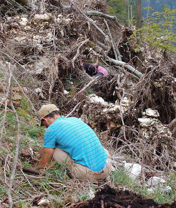 Der Sonntag erwartet uns mit Sonnenschein. Als ‚Belohnung’ ist heute schon um 12 Uhr Schluss, dafür führt uns der Förster ein Stück die Weißwand entlang und zeigt uns die Arbeiten, die Wasserwirtschaftsamt und die Forstbehörden hier unternommen haben.