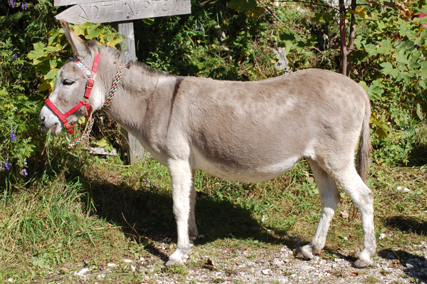 Zurück am Wanderweg treffen wir auf eine Eselsgesellschaft, die ihr ‚Frauchen’ bei den Wanderungen im Lattengebirge begleitet.